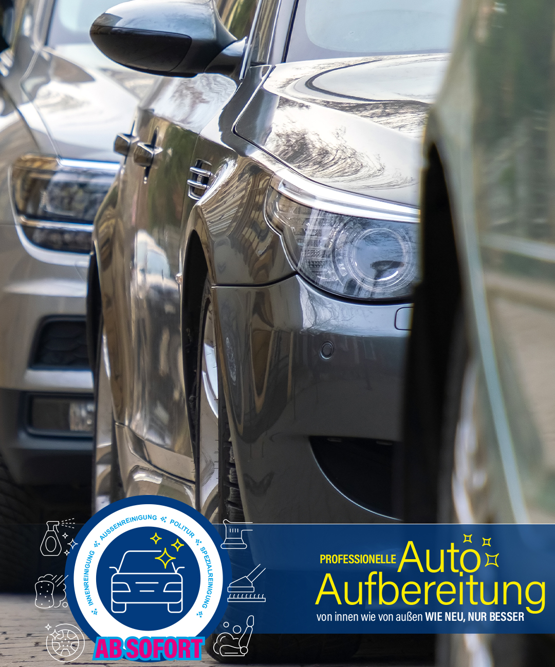 Unsere professionelle Innen- und Außenaufbereitung bringt dein Fahrzeug optisch wieder auf ein neues Niveau.